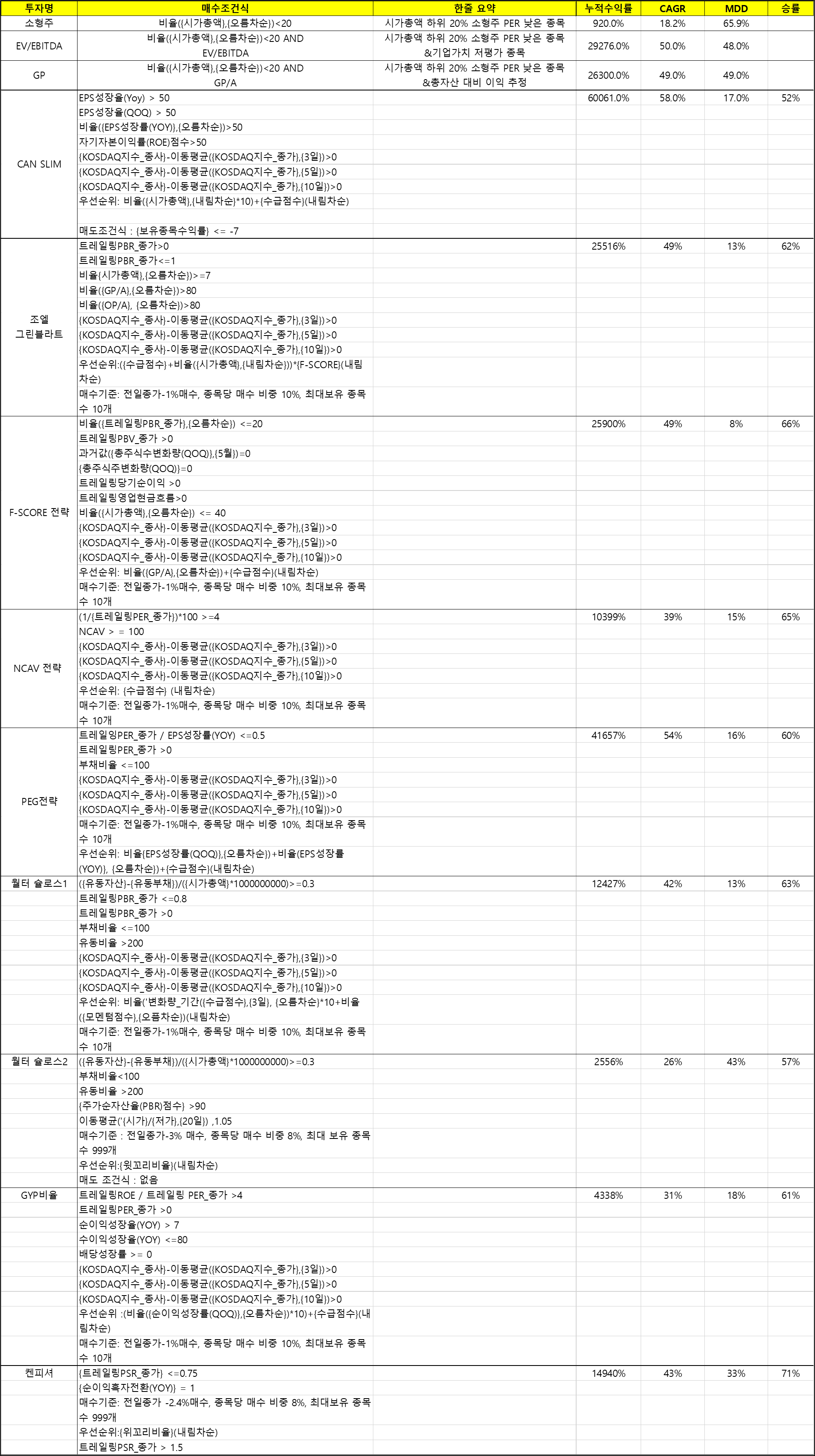 욕심이 있다면 소개해준 모던 전략을 수익률을 비교해서 한꺼번에