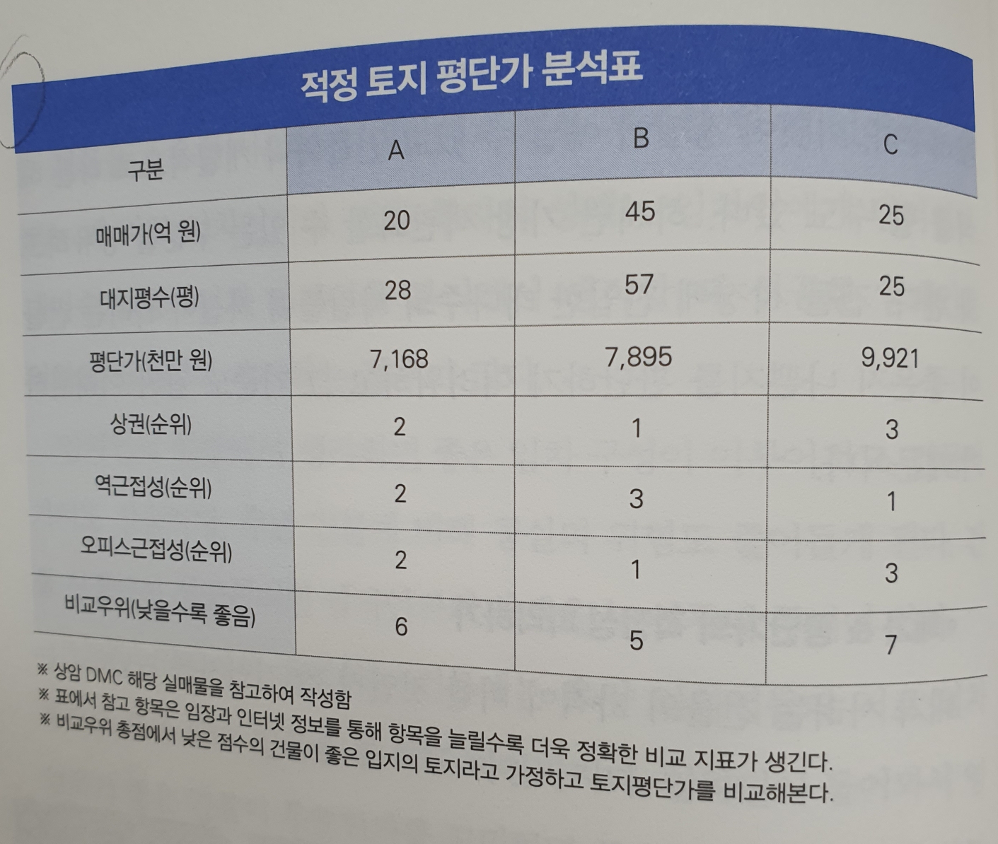 표. 적정토지 평단가 분석표