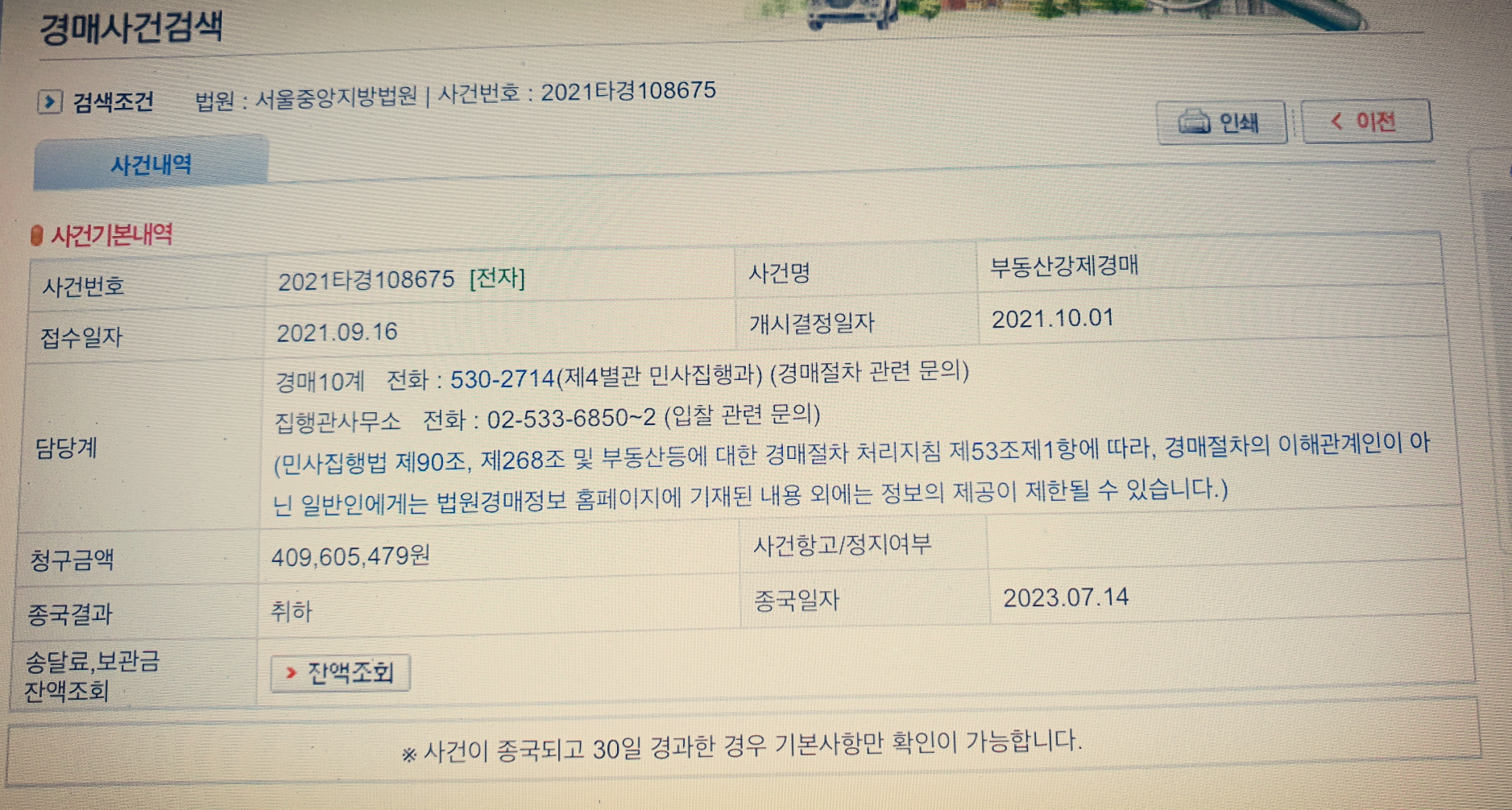 결과는 경매가 취하되었다고 법원경매정보에서 확인을 했다.