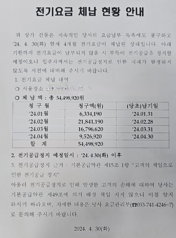 #빌딩전기료체납문제