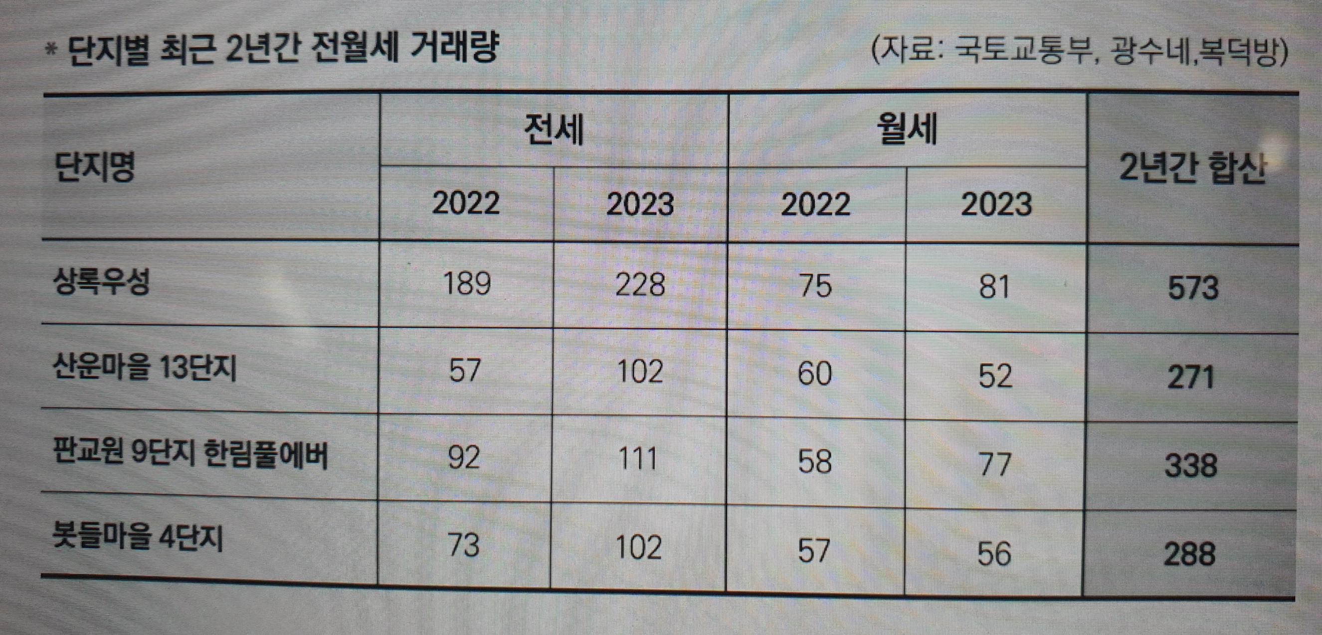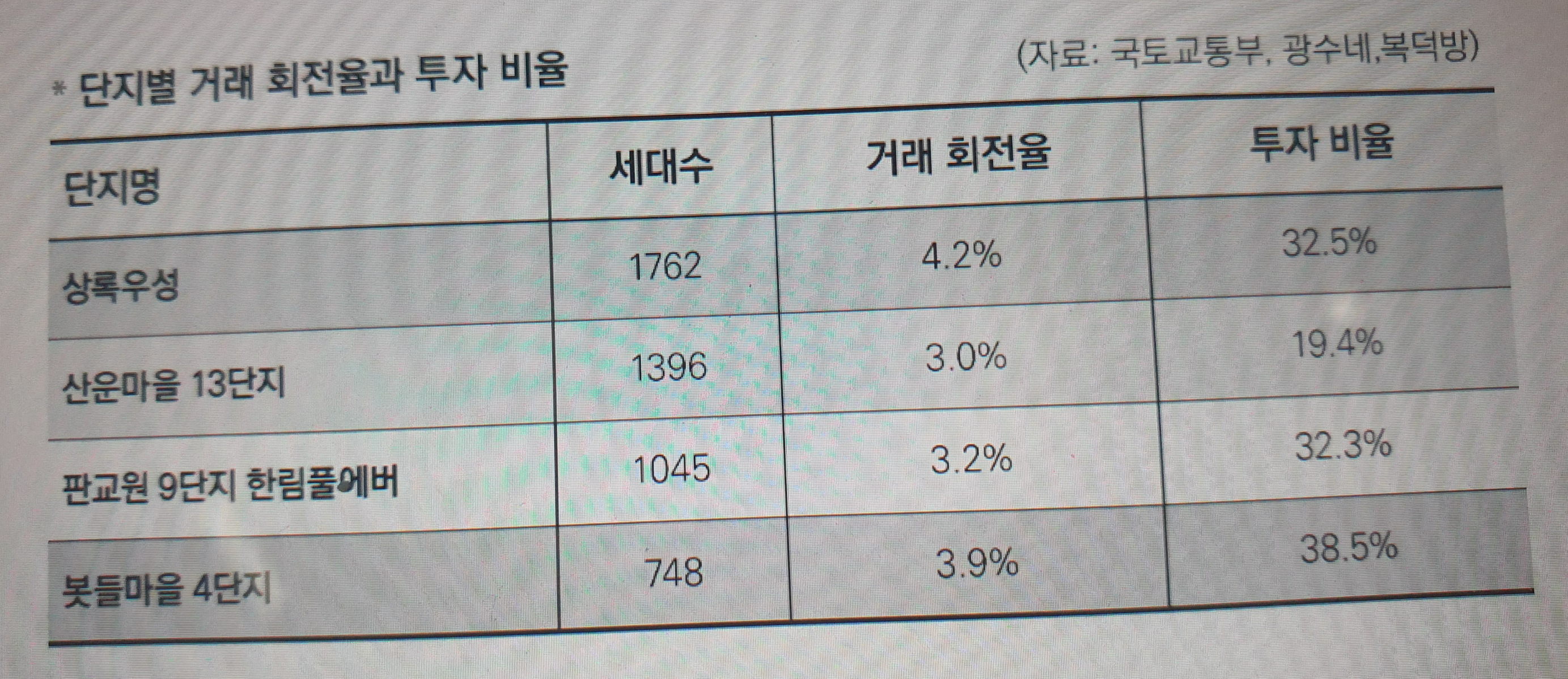 예) 1000세대 아파트에서 2년 동안 전월세 거래 300건 = > 투자 비율 30%