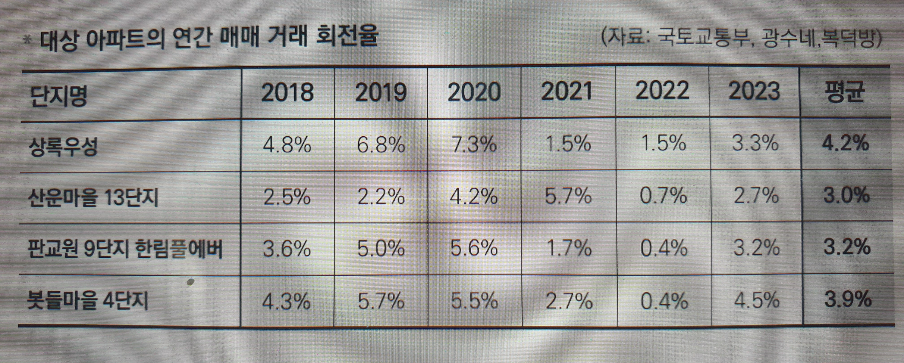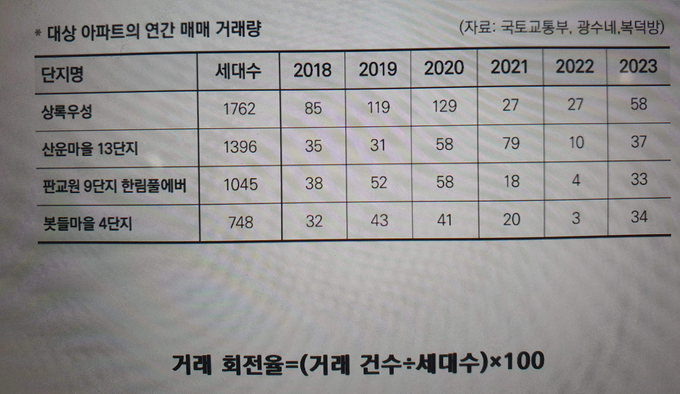 거래 회전율은 전체 세대에서 1년 동안 몇 채가 거래 되었는지 나타내는 비율
