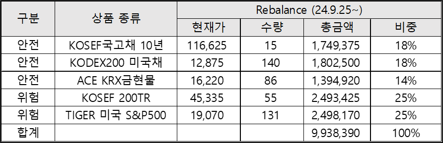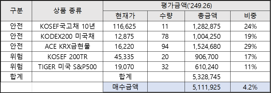 그럼 24년 9월 기준 ISA 자산 배분 결과를 한번 따져 보자.