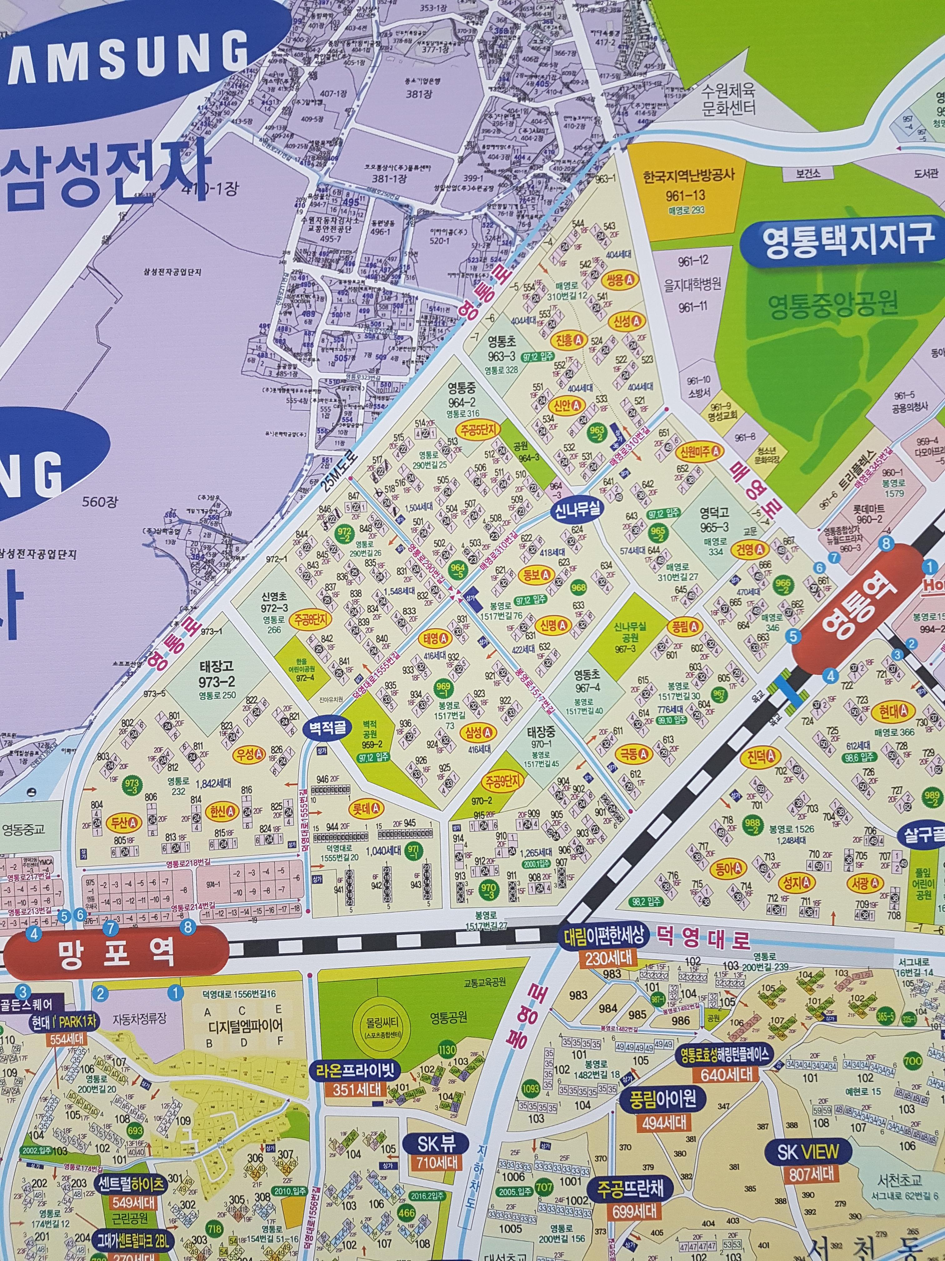 가장 인기 있는 학군은 영통역에 가까이 있는 영일중학교라고 한다.