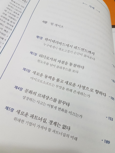 IT기업이라 조금 어려운 내용도 있지만 특히 시스템이나 프로그램 언어 같은것은 그것은 그냥 무시해도 사업을 성공시키거나 아니면 현재 빠져 있던 기존의 패러다임에서 새로운 먹거리를 찾기 위해서는 나와 조직간의 공감 필요하다는 것과 혁신을 이뤄기 위해서는 위에서가 아니라 위와 아래가 같이 커뮤니케이션하면서 이뤄나가야 한다는 내용은 재미있게 봤다.