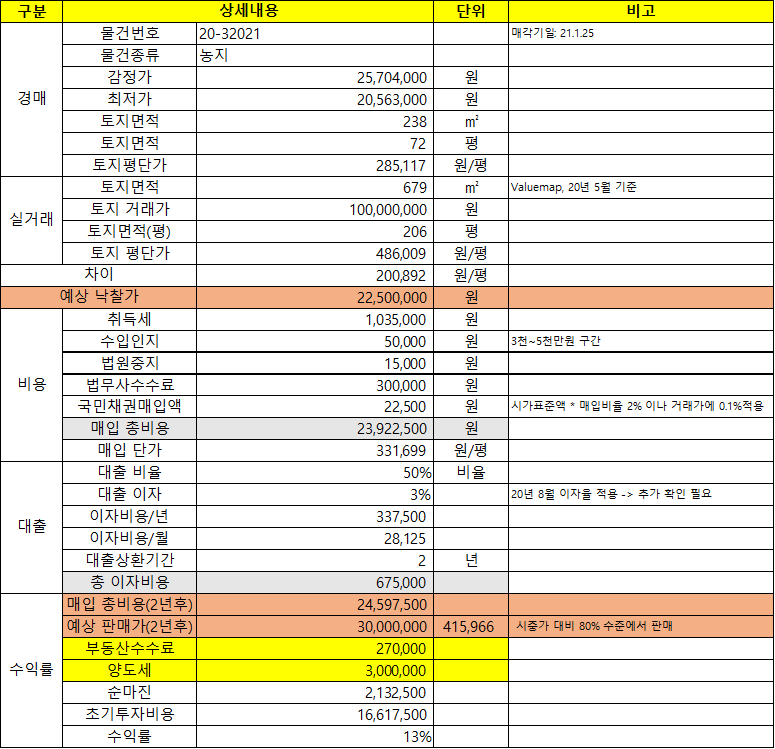 낙찰 목표가는 감정가 대비 87.5% 수준으로 잡고 수익률은 10% 정도로 잡았다.