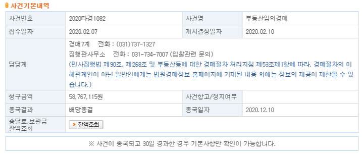 경매 최종 결과는 약 58백만원에 낙찰 되었다.