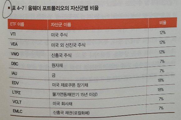 주말에 나를 잠들게 만든 책이다.제일 뒤편에 나와있는 자산 포트폴리오로 당신만의 자산 배분을 한다면어려운 시점에 반드시 이겨낼수 있는 동력이 되지 않을까 생각해본다.
