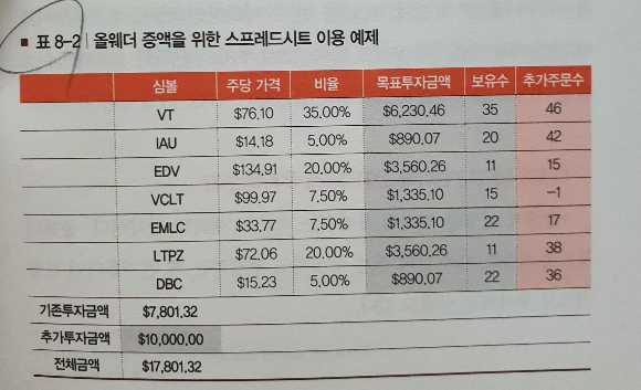 표 8-2 올웨더 증액을 위한 스프레드시트 이용 예제