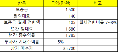 전용 면적 7평이고 매매가는 4.6억원이고 임차인 계약은 1년이고 1500/140으로 되어 있었다.
