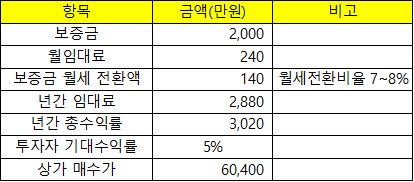 임차인을 들이는 조건으로 보증금 2천만원/240만원을 계약 준비중이라고 한다.