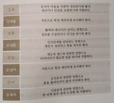 남쪽 : 재능과 센서에 관련한 방향으로 창의적인 발상하기에 적합