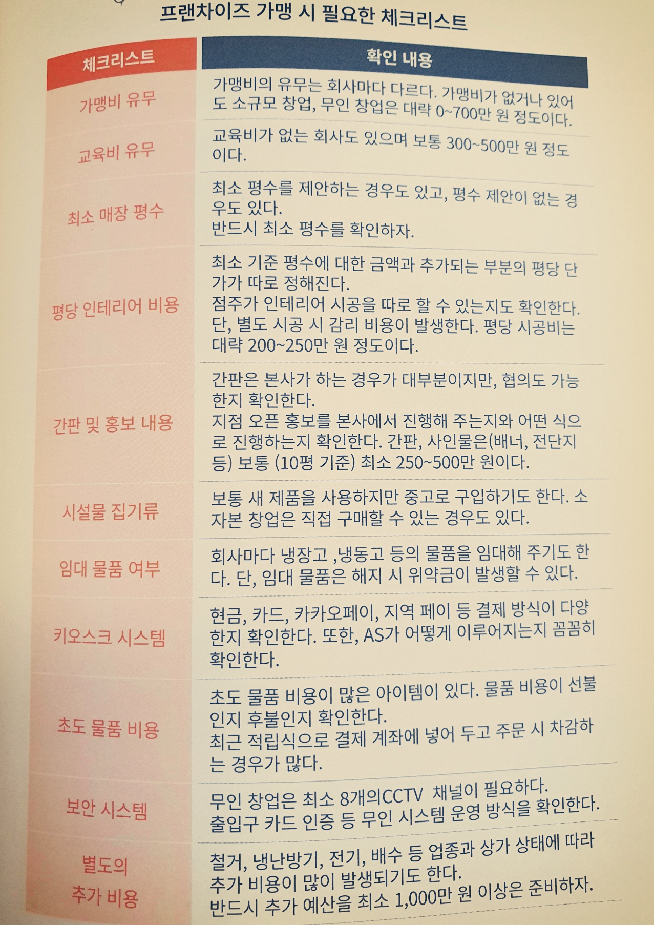 창업이 처음인 예비 창업자는 프랜차이즈 회사의 도움을 받아 시스템을 배우고 매뉴얼을 익히는 것도 방법이다.