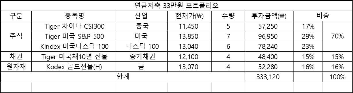 연금저축 포트폴리오를 구성하고자 하는데 이 부분이 해결되어