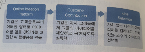 기업은 내부 인원 뿐만 아니라 외부 인원들을 혁신의 파트너로 받아들이고 그들에게 권한을 주며, 그들이 적극적으로 창의적인 아이디어를 낼수 있도록 독려해 제품이나 서비스 콘셉트를 함께 만들어 간다.